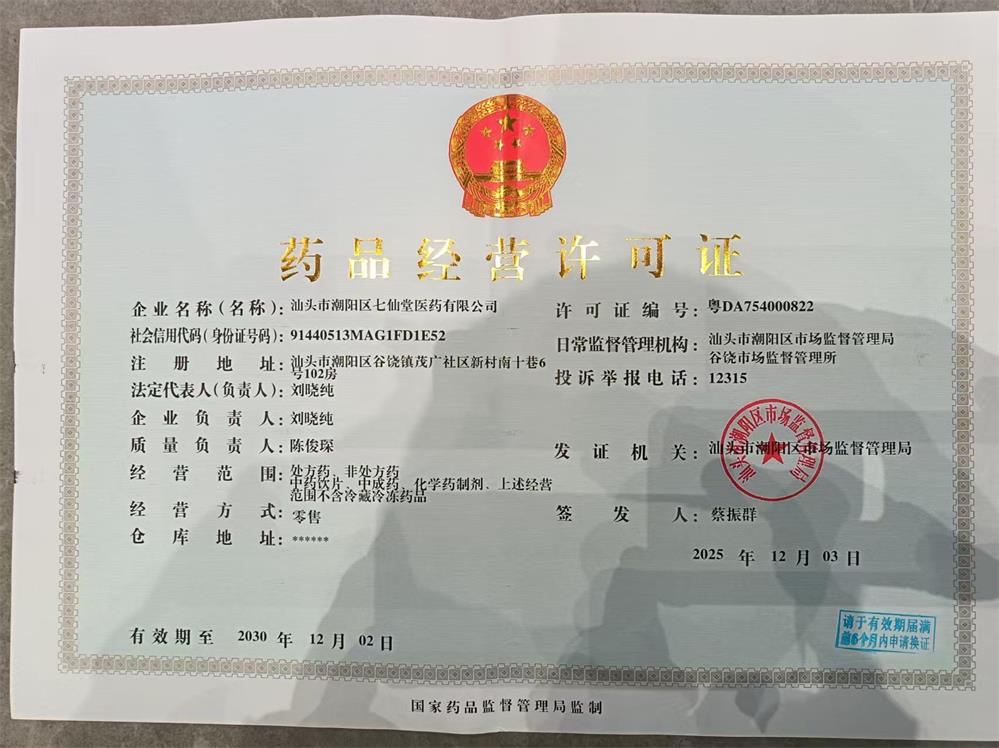 汕头市潮阳区七仙堂医药有限公司,企业注册地址位于汕头市潮阳区谷饶镇茂广社区新村南十巷6号102房。汕头市潮阳区七仙堂医药有限公司成立于2018-12-21,法定代表人为吴泽扬,注册资本为10万元,统一社会信用代码为91440511MA52NMY69C,企业注册地址位于汕头市金平区金禧花园金杨4.5幢119号房、120号房之二,所属行业为科技推广和应用服务业,经营范围包含:生物技术的研发、推广;药品经营;食品销售;保健食品销售;餐饮服务;医疗器械经营;商务信息咨询;保健信息咨询;文化传播活动策划;销售及网上销售:农副产品,海产品,化妆品,洗涤用品,消毒用品,计生用品等。公司秉承“大众健康,我们的心愿”的经营理念,严把质量关,竭诚为广大客户提供优质的产品和服务。我们本着“开拓进取,互惠共赢,优质的服务”的企业精神,以规范、专业、创新、共赢的经营理念,在稳步发展的同时切实履行各种社会责任,树立可持续发展的奋斗目标。面向全国,服务社会,以人民利益为先,希望为人类健康事业做出更大的贡献。。